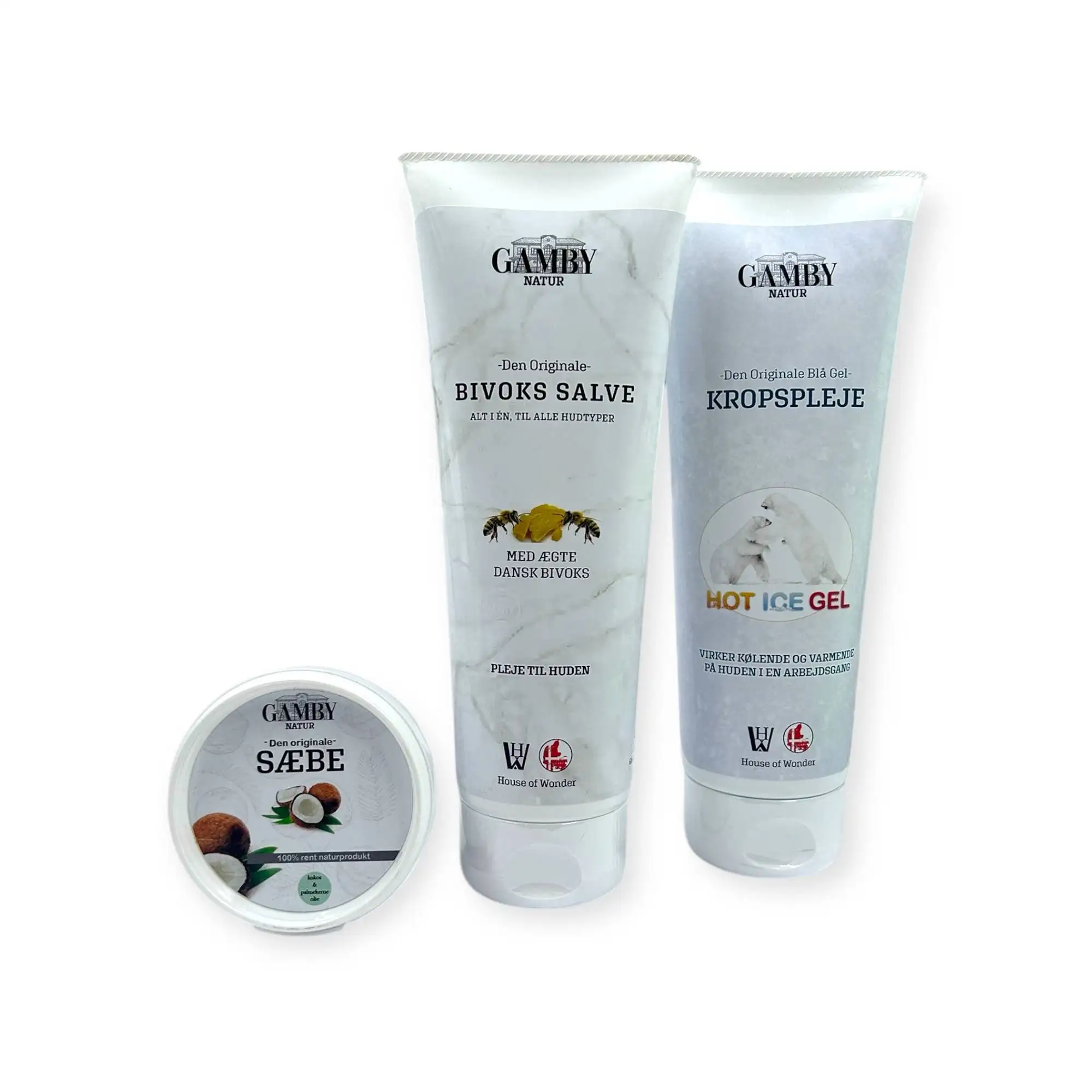 Den bedste trio fra Gamby natur til pleje af hele familien. Kombinationen af Kropsplejen, Bivoks Salven og Natur Sæben tilbyder en alsidig rutine til pleje af hele familien. Produkterne supplerer hinanden og kan være en del af den daglige velvære.